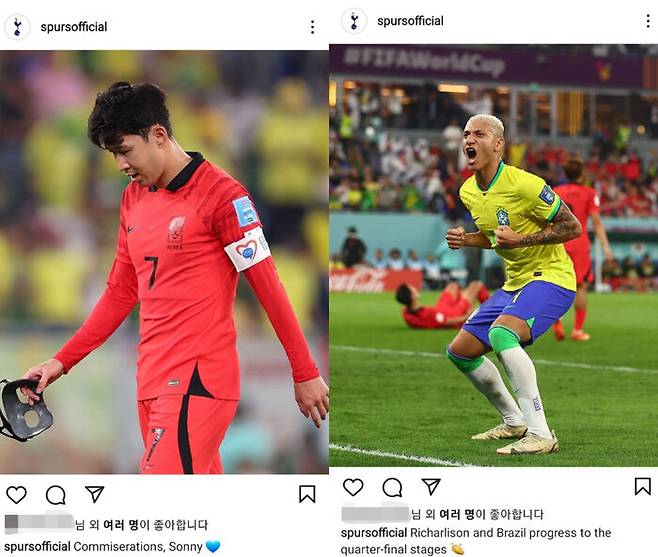 소속팀인 토트넘 홋스퍼 역시 경기 직후 두 선수에게 각각 위로와 축하의 메시지를 남겼습니다.