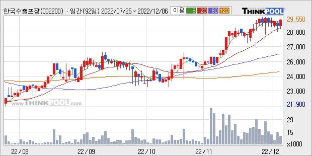 '한국수출포장' 52주 신고가 경신, 단기·중기 이평선 정배열로 상승세