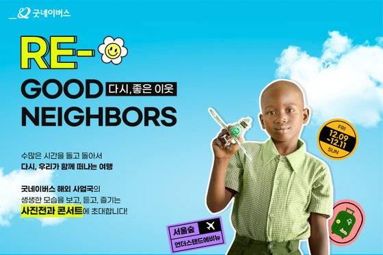 글로벌 아동권리 전문 NGO 굿네이버스는 연말을 맞아 오는 9일(금)부터 11일(토)까지 성수동 ‘언더스탠드에비뉴 아트스탠드’에서 ‘2022년 좋은 이웃 사진전·토크 콘서트’를 진행한다고 6일 밝혔다. 이번 사진전과 토크 콘서트는 ‘Re-Good Neighbors(다시, 좋은 이웃)’이라는 주제로 코로나19로 직접 만나지 못했던 좋은 이웃들이 한 자리에 모여 나눔의 의미를 공유하기 위해 마련됐다.