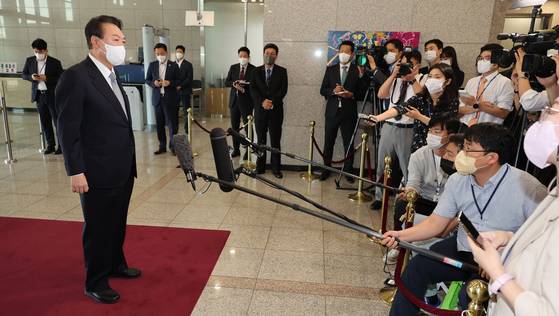 The author is the executive editor of the JoongAng Ilbo. Much of the unnecessary dispute over daily comments from President Yoon Suk-yeol has eased since he stopped the morning routine of holding a short press briefing on his way to work. His approval rating has since gone up to 38.9 percent from 33.4 percent two weeks ago. The first-ever attempt of a Korean president to answer questions from reporters nearly on a daily basis provoked more controversy than satisfying people’s rights to know. Whenever he made a slip of the tongue, his opponents ferociously attacked him. TV channels and YouTubers had a field day dissecting — and adding meaning to — his every word.