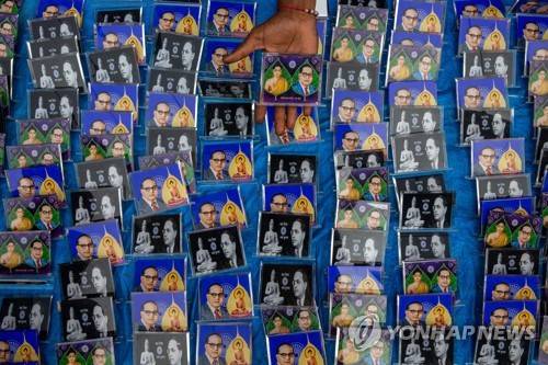 epa10351833 An Indian Dalit, low-caste or considered untouchalbe people, and supporters of Bhim Rao Ambedkar offers photo frames during a rally at Shivaji Park near Chaitya Bhoomi, memorial of B.R. Ambedkar, to pay tribute on his 66th death anniversary, in Mumbai, India, 06 December 2022. Hundreds of patrons from Maharashtra and neighbouring states gather at Chaitya Bhoomi (pure land) to pay tribute to Bhimrao Ramji Ambedkar, an iconic low-caste Hindu leader who fought against discrimination on the basis of caste. EPA/DIVYAKANT SOLANKI