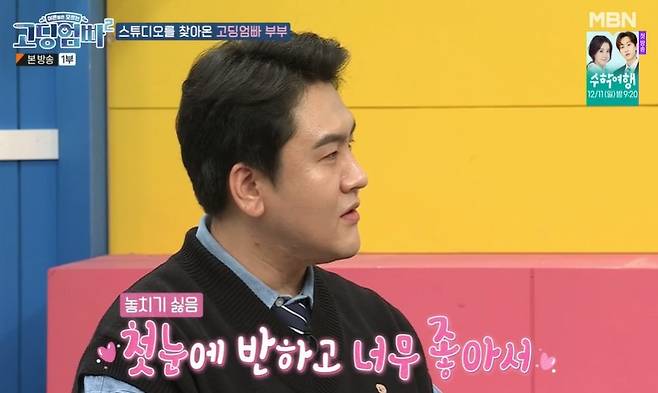 이들 부부는 현재 은지 씨의 친정에서 생활 중. 은지 씨를 위해 처가살이를 결심했다는 준민 씨는 “처가에 살면서 힘든 점이 뭔가?”라는 장인어른의 질문에 “힘들기보다 다른 점들이 보인다. 다들 텐션이 높은데 나만 웃지 않으니 분위기 깨고 사람을 민망하게 한다는 오해를 산다”라고 답했다. 이에 장인어른은 “나도 그렇게 살아왔다”며 웃었다.