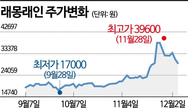 앞서 래몽래인의 주가가 급등하자 투자사들의 차익실현도 이어졌다. 래몽래인의 3대 주주였던 SBI인베스트먼트는 래몽래인 52만6925주(10.56%)를 모두 처분했다. 지난달 22일 13만주를 2만3222원에, 23일 39만6925주를 2만6675원에 매도, 약 136억원의 수익을 거뒀다. 투자 원금의 세 배에 달하는 수익이다.