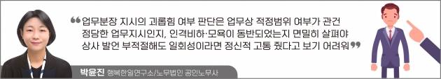 이와 같은 사례에서는 해당 지시가 업무상 적정범위를 벗어나는 것인지 여부가 쟁점이 됩니다. 즉, 상사의 지시가 정당한 업무지시명령권에 해당하는지, 그와 같은 지시를 하는 과정에서 상대방의 인격을 비하하거나 비난하는 등 부적절한 언행이 동반되었는지, 업무상 필요성이 없음에도 불구하고 다른 의도를 가지고 업무 분장을 다시 짠 것은 아닌지 면밀하게 살펴봐야 합니다.
