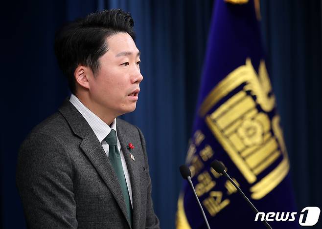 (서울=뉴스1) 오대일 기자 = 이재명 대통령실 부대변인이 7일 오후 용산 대통령실 청사에서 현안 브리핑을 하고 있다. 2022.12.7/뉴스1
