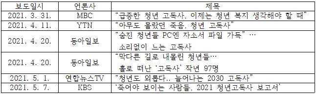 이런 고독사 예방에 대한 조례와 정책이 진행되는 와중에 2021년부터 ‘청년 고독사’에 대한 언론보도가 급증하기 시작했다.