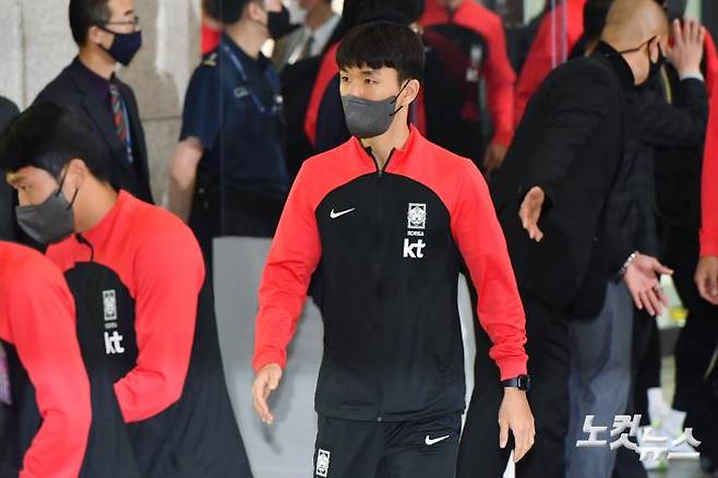 카타르 월드컵 16강 쾌거를 달성한 대한민국 축구 국가대표팀의 황인범이 7일 오후 인천국제공항을 통해 입국하고 있다. 파울루 벤투 감독이 이끄는 대한민국 대표팀은 2022 카타르 월드컵에서 조별예선 1승1무1패로 2010 남아공월드컵 이후 12년 만에 16강에 올랐다. 16강에선 세계 최강 브라질을 만나 패하면서 이번 월드컵 여정을 마무리했다.