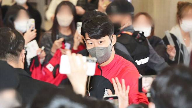 캡틴 손흥민이 등장하자 환호성이 더욱 커집니다.