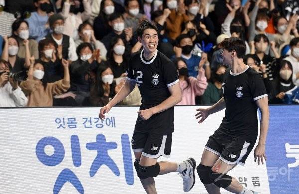 7일 천안 유관순체육관에서 열린 ‘2022~2023 도드람 V-리그’ 남자부 현대캐피탈과 삼성화재 경기에서 현대캐피탈 전광인이 3세트 공격 득점에 성공한 후 기뻐하고 있다.
