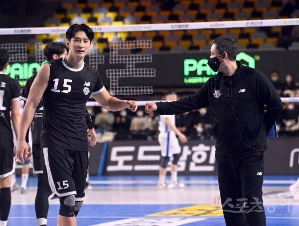 최태웅 감독 ‘(문)성민 플레이 좋았어’ [포토]