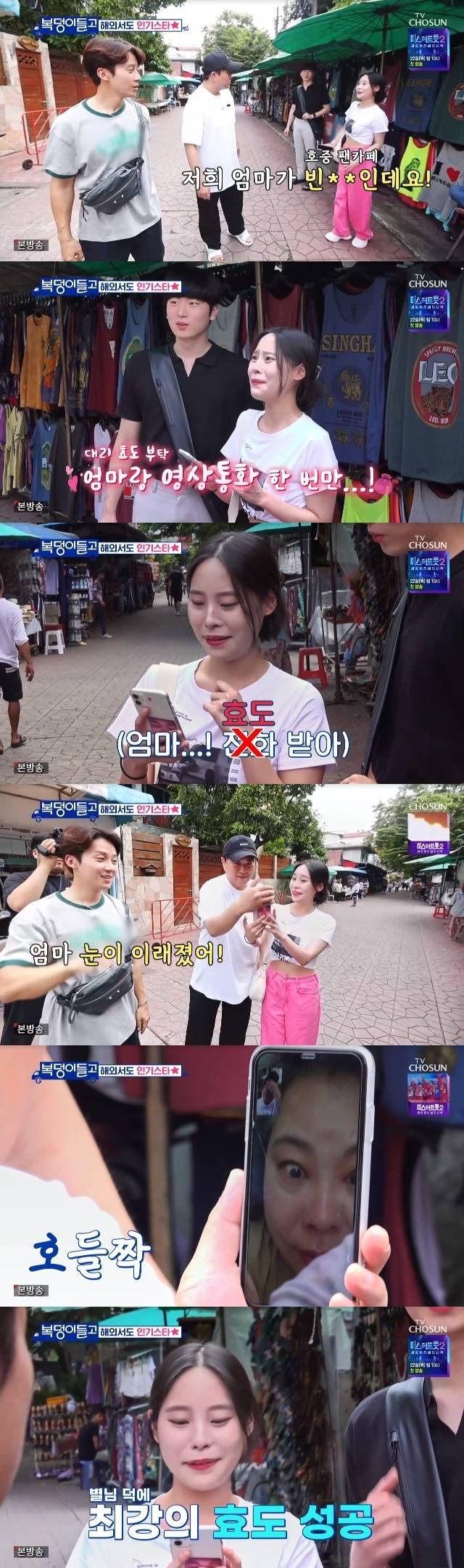 전화를 받은 어머니 팬은 갑자기 등장한 김호중에 눈이 왕방울해졌다. 그러곤 "어떻게 된 거냐"고 물었고, 김호중은 "방콕에서 따님과 만났다"고 답했다.
