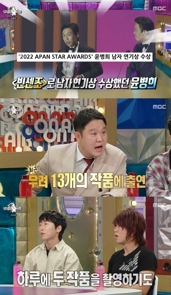 12월 7일 방송된 MBC ‘라디오스타’에서는 배우 윤병희가 하루 두 작품을 촬영한 적도 있다고 말했다.