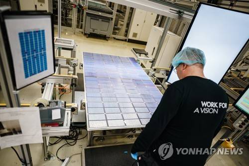 epa10353830 Operator Torsten inspects solar cells at the solar module manufacturer Meyer Burger (Industries) GmbH in Freiberg, Germany, 07 December 2022. The nearly 70 year old company Meyer Burger (Industries) GmbH produces solar panels with a 40 year expertise in photovoltaics in the Saxon city of Freiberg near Dresden. EPA/CLEMENS BILAN