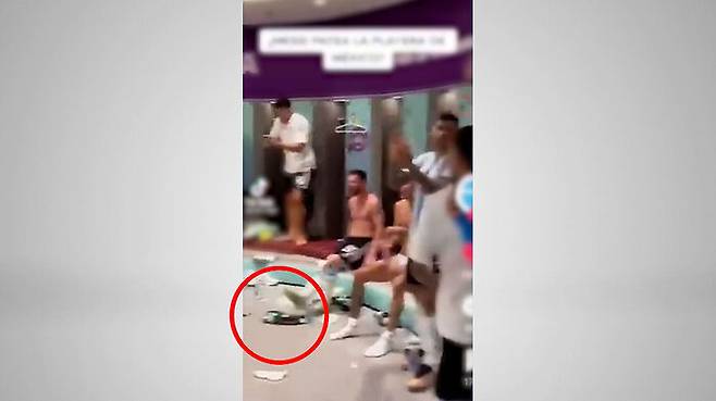 경기 후 메시가 라커룸에서 동료들과 자축하던 중에 바닥에 놓인 멕시코 유니폼을 발로 건드리는 듯한 동작이 포착됐습니다.