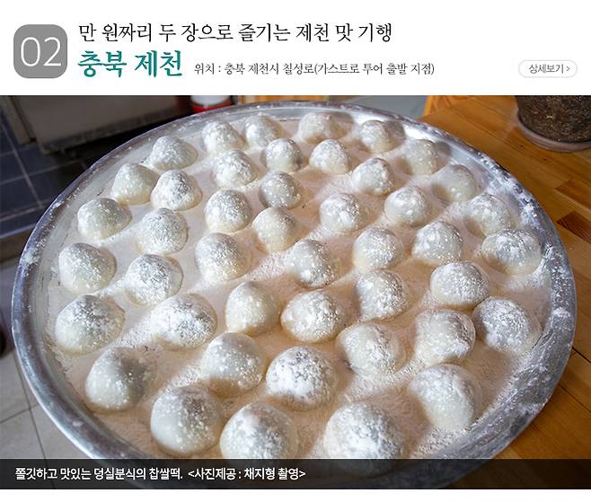 충북 제천은 저렴한 비용으로 높은 만족도를 기대할 수 있는 여행지다. 1만 9900원에 제천의 5가지 맛을 즐기는 ‘가스트로 투어’가 있기 때문이다. 가스트로 투어는 다양한 음식을 맛보며 제천의 이야기를 듣는 미식 프로그램이다(약 2시간 소요). 명물 빨간오뎅과 ‘덩실분식’ 찹쌀떡부터 약초를 넣은 약선 음식까지 제천의 식문화를 골고루 만난다.