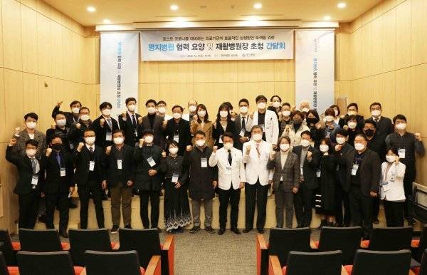 명지병원은 6일 오후 병원 농천홀에서 협력 요양·재활병원장을 초청해 포스트 코로나에 대비 방안 모색을 위한 세미나 겸 상생 간담회를 열었다.