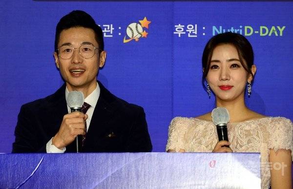 8일 서울 청담동 리베라호텔에서 열린 ‘2022 뉴트리데이 일구상 시상식’에서 정찬우, 정순주 아나운서가 사회를 맡아 행사를 진행하고 있다.