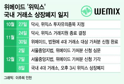 위메이드의 자체 코인 '위믹스'가 국내 4대 가상자산 거래소에서 퇴출됐다. 지난해 11월 2만8000원까지 치솟으며 김치코인(국내서 발행한 가상화폐) 신화를 썼던 위믹스는 1년 만에 300원대로 주저앉았다. 장현국 위메이드 대표는 "위믹스 생태계는 건재하다"고 자신했지만, 국내 거래량 비중이 98%에 달한 점을 고려하면 재기가 쉽지 않을 것이란 우려가 쏟아진다.