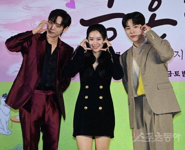 배우 김영대, 박주현, 김우석이 8일 서울 용산구 CGV용산아이파크몰점에서 열린 MBC 새 금토드라마 ‘금혼령, 조선 혼인 금지령’ 제작발표회에서 포즈를 취하고 있다.