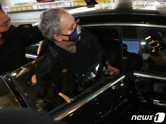 (인천공항=뉴스1) 권현진 기자 = 프로듀서 존 랜도가 '아바타2: 물의 길'(아바타2) 홍보를 위해 8일 인천국제공항으로 입국해 차에 타고 있다.