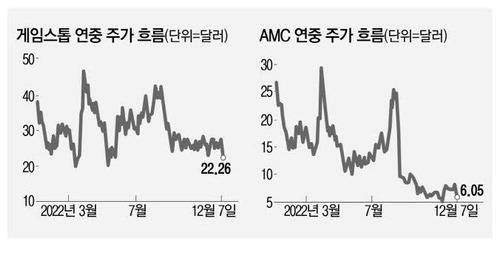 게임스톱은 지난해 '밈주식 대장주'로 주목받은 대표 종목이다. 밈주식은 온라인 커뮤니티를 중심으로 개인투자자들이 기관의 공매도에 맞서기 위해 주식을 사들이면서 주가가 폭등한 종목을 말한다. 올 들어 증시가 불황기에 접어들자 밈주식 주가도 급락하고 있다. 기업의 내재가치나 실적과는 무관하게 주가가 오른 만큼 하락 속도도 가파르다. 게임스톱 주가는 올 들어 40% 넘게 하락한 상태다.