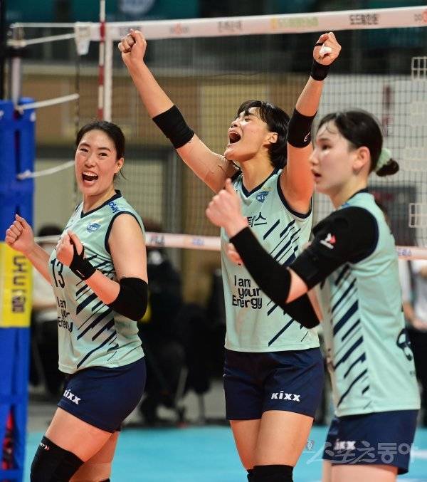 GS칼텍스, 블로킹 득점에 환호 [포토]