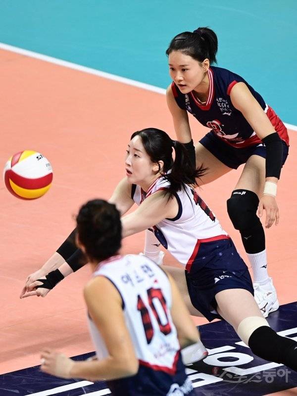 8일 서울 장충체육관에서 열린 ‘2022-2023 도드람 V-리그’ 여자부 서울 GS칼텍스와 수원 현대건설의 경기에서 현대건설 고예림이 리시브를 하고 있다.
