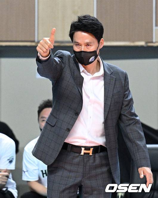 5세트 현대건설 강성형 감독이 선수들에게 엄지를 올리고 있다. 2022.12.08 /sunday@osen.co.kr