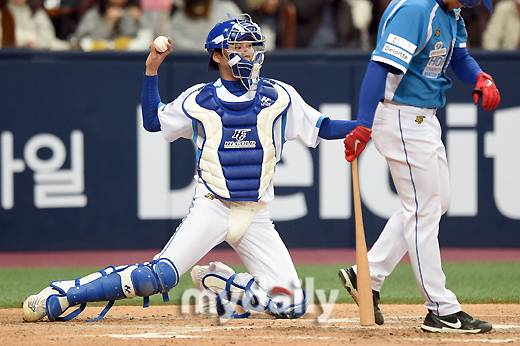 [마이데일리 = 유진형 기자] 야구에서 포수는 극한 직업의 포지션이다. 포수 마스크부터 시작해서 가슴과 다리 등 많은 보호대를 착용한다. 니쿠션을 종아리 뒤에 착용해 오래 앉아있어야 하는 불편함을 해결하기도 한다. 그리고 눈에 보이지는 않지만 유니폼 안쪽으로는 낭심보호대를 착용한다.