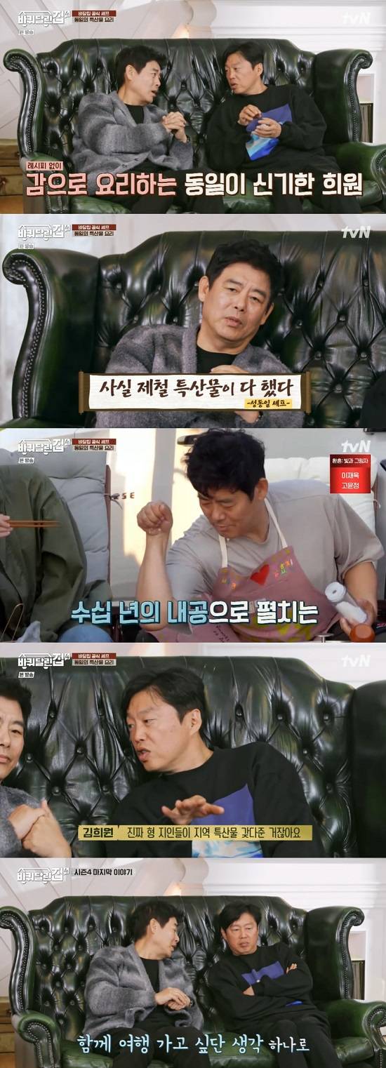 성동일은 "각 지역의 특산물이 우리 요리의 최고였다"고 회상했고 김희원은 "형의 진짜 지인들이 가져다주신 거 아니냐. 진짜 재료가 (힘이) 컸다"고 이야기했다.