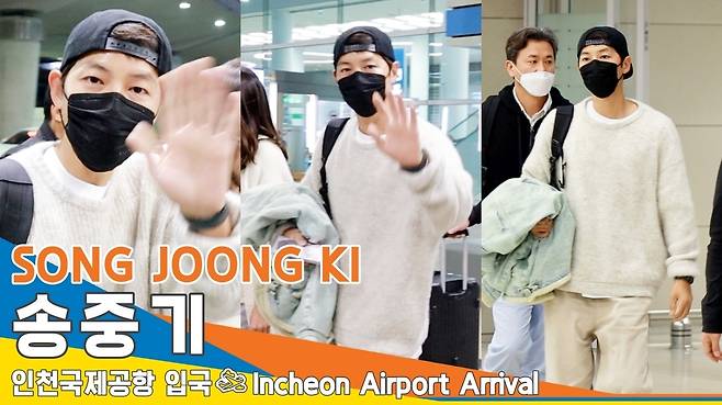 배우 송중기가 12월 09일 오전 싱가포르에서 열린 드라마 '재벌집 막내아들' 해외 프로모션 일정을 마치고 인천 중구 인천국제공항을 통해 입국하고 있다.