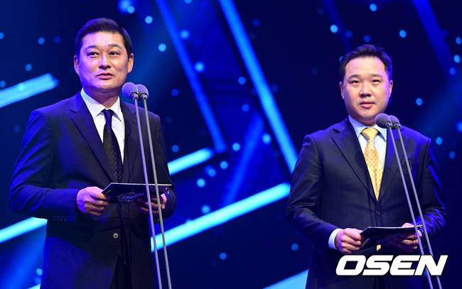 골든글러브 시상자로 나선 KBO 레전드 이종범 LG 코치와 박진만 삼성 감독이 인사말을 전하고 있다. 2022.12.09 / dreamer@osen.co.kr