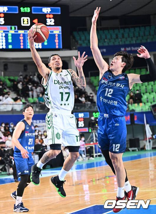 [OSEN=대구, 이석우 기자] 9일 대구 실내체육관에서 ‘2022-2023 SKT 에이닷 프로농구’ 대구 한국가스공사와 원주 DB의 경기가 열렸다.