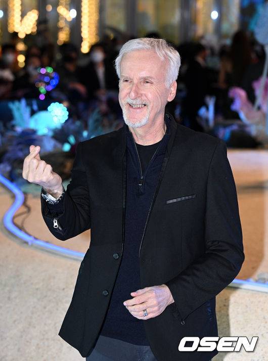 제임스 카메론 감독이 취재진을 향해 포즈를 취하고 있다. 2022.12.09 /sunday@osen.co.kr