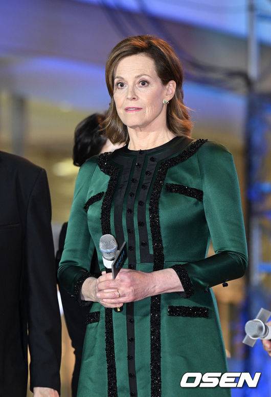 배우 시고니 위버가 팬들을 향해 인사를 하고 있다. 2022.12.09 /sunday@osen.co.kr