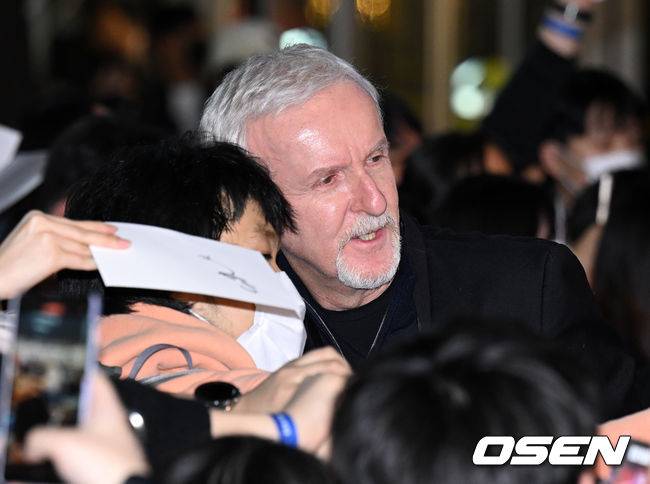 제임스 카메론 감독이 팬과 셀카를 찍고 있다. 2022.12.09 /sunday@osen.co.kr