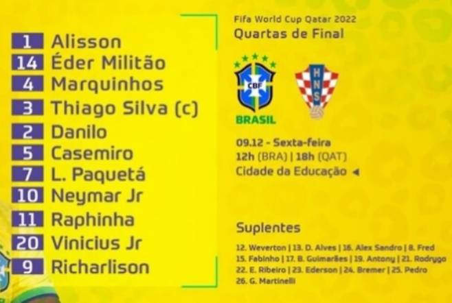 브라질과 크로아티아는 10일 오전 0시(한국시간) 카타르 알 라이얀에 위치한 에듀케이션 시티 스타디움에서 2022 카타르 월드컵 8강전을 치른다.