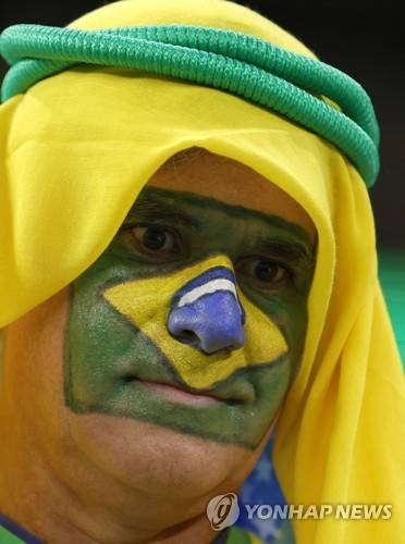 epa10356757 Supporter of Brazil arrives for the FIFA World Cup 2022 quarter final soccer match between Croatia and Brazil at Education City Stadium in Doha, Qatar, 09 December 2022. EPA/Ronald Wittek