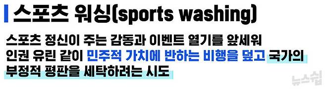 카타르만이 아니었다. 스포츠 정신과 게임 열기를 지렛대 삼아 "우리는 그렇게 나쁜 나라가 아니"라며 부정적 평판을 세탁하려는 시도는 스포츠사(史) '흔히' 있던 사례였다. 이번처럼 탄압의 증거를 은폐시키기 위해 또 다른 탄압이 자행된 경우도 있었다. 이른바, '스포츠 워싱'(sports washing)이다.