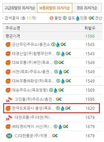 휘발유의 경우 최저가는 임대주유소인 서천과 군산주유소가 1545원, 평균가는 1597원입니다. 반면 도로공사가 직영하는 홍성주유소는 1620원으로 최저가 임대주유소보다는 75원이 더 비싸고 평균가보다는 23원이 비쌉니다.