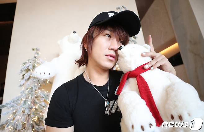 코미디언 김경욱(부케 다나카 유키오)이 서울 마포구 성산동 카페 PITC에서 열린 뉴스1과의 인터뷰에 앞서 포즈를 취하고 있다.