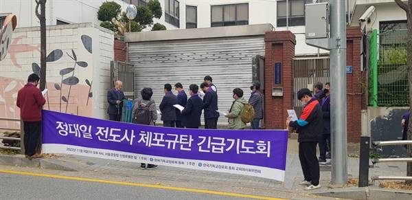 | ▲ 한국기독교 장로회 총회의 기도회모습 양천구 신정동 안보수사대앞이다. |