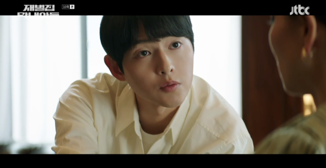 10일 방송된 JTBC 금토일 드라마 '재벌집 막내아들'(극본 김태희, 장은재/연출 정대윤, 김상호)에서는 진도준(송중기 분)이 진화영(김신록 분)을 압박해 순양백화점을 손에 넣는 모습이 그려졌다.