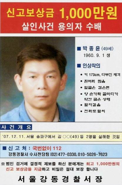 공범은 잡혔지만…박종윤은 지명수배 수년째 첫줄