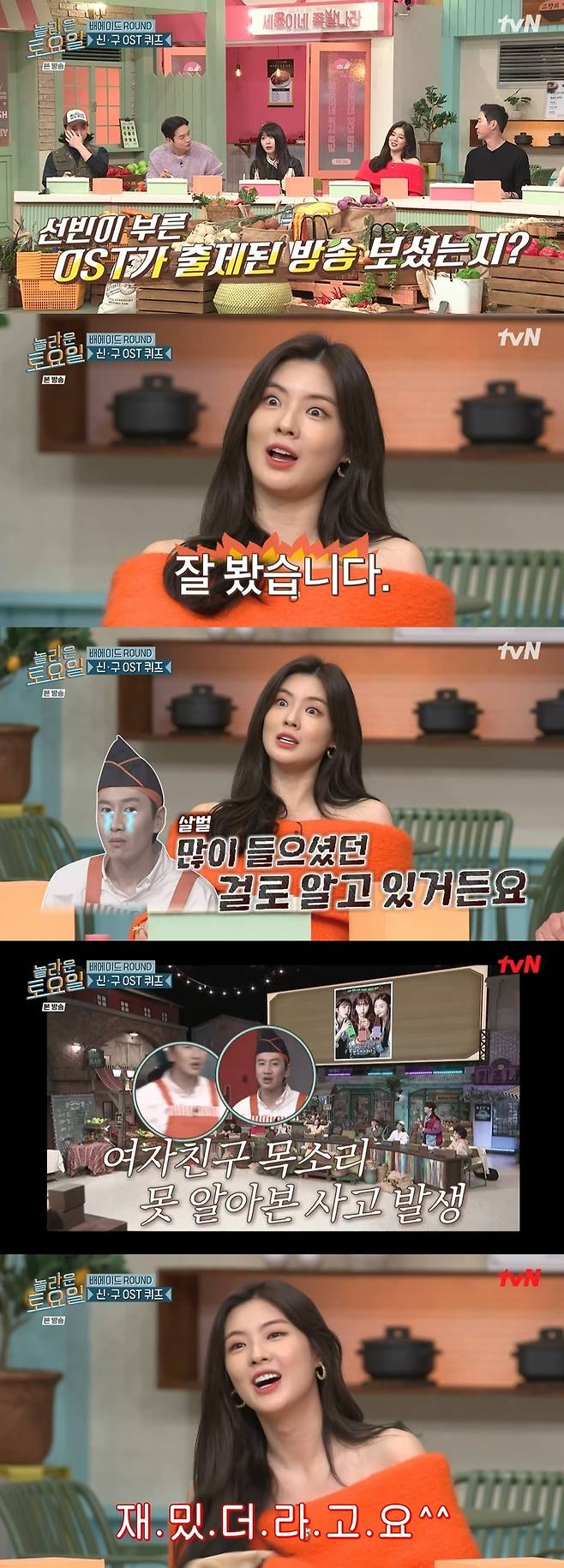 1라운드 후 진행된 간식 게임은 신구 OST 퀴즈로 진행 됐다. 붐은 “예전 간식 게임 때 선빈 씨 노래 나온 적 있는데 혹시 보셨나”라고 물었다. 이선빈은 “안 그래도 잘 봤다”라고 답하며 눈을 부릅떴다.