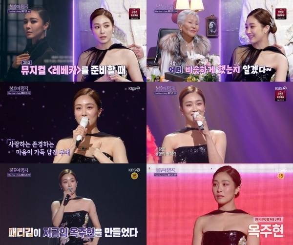 듣는 순간 짜릿한 전율을 일으킨 옥주현의 무대에 관객은 물론 출연진들 역시 환호를 보냈고, 옥주현은 ‘불후의 명곡’ 첫 출연부터 패티김 특집 3부 최종 우승을 차지하며 레전드의 위엄을 몸소 증명했다.