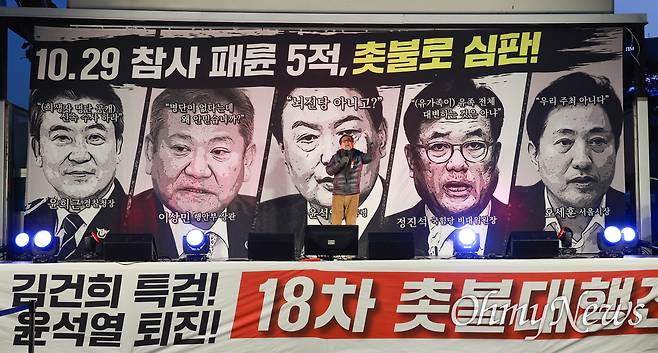 | ▲ 황교익 맛칼럼니스트가 10일 서울 중구 숭례문앞 세종대로에서 열린 ‘김건희 특검, 윤석열 퇴진 제18차 촛불대행진’ 무대에 올라 발언하고 있다. |
