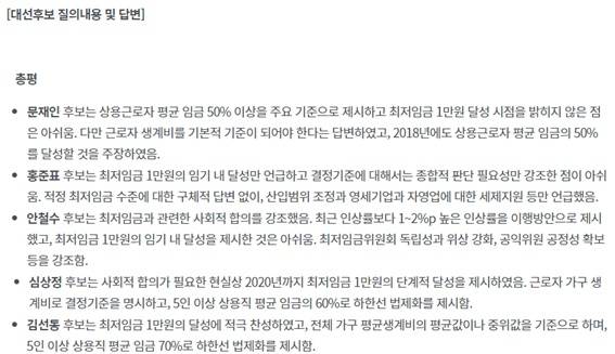 | ▲ 대선후보 질의내용 및 답변 대선후보 질의내용 및 답변, 출처 : 참여연대 |