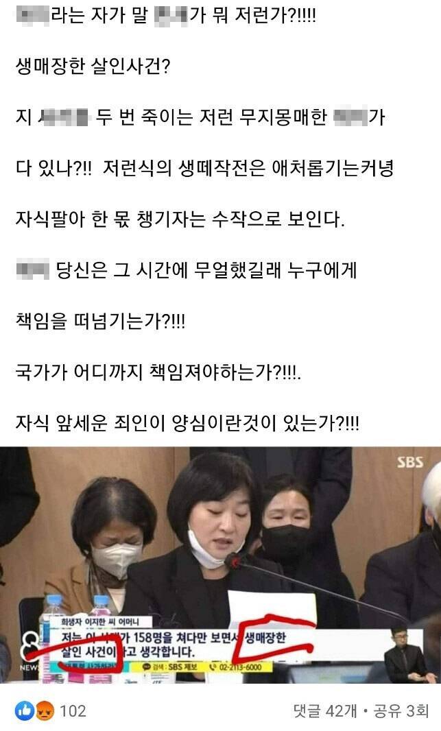 이에 대해 A시의원은 “이태원 참사 유족들은 정말 슬픈 게 맞다”면서 “SNS에 올린 글은 이태원 참사 유족을 욕되게 하려고 쓴 것 아니라 이태원 참사를 이용하는 세력들을 향해서 쓴 글”이라고 해명했다.