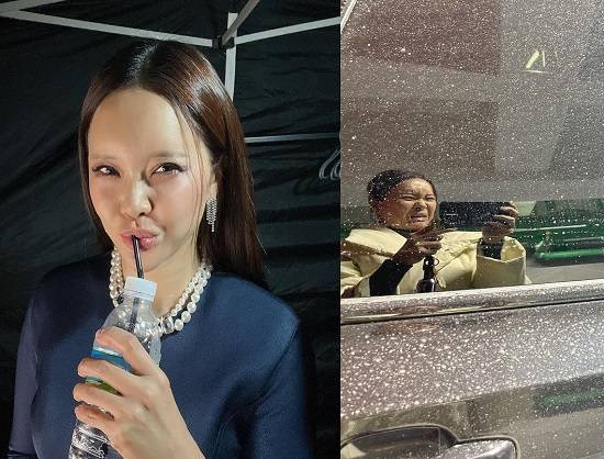 공개된 사진 속 백지영은 미세먼지가 가득 묻은 차를 보며 한껏 찡그린 표정을 지어 웃음을 자아냈다.